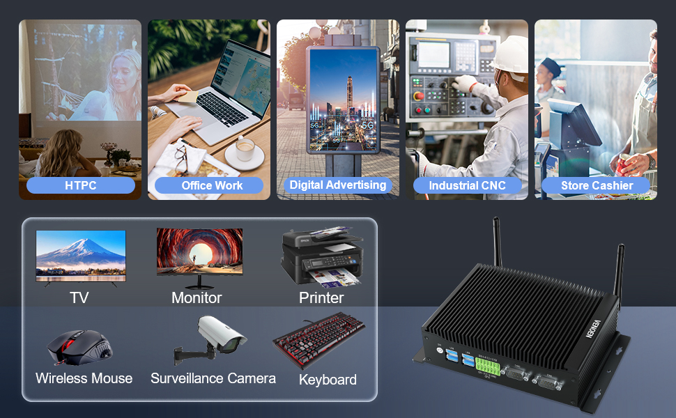 รองรับอุปกรณ์ต่อพ่วงได้หลากหลาย เช่น มอนิเตอร์ โปรเจกเตอร์ เครื่องพิมพ์ สแกนเนอร์ และระบบควบคุมอุตสาหกรรมต่าง ๆ