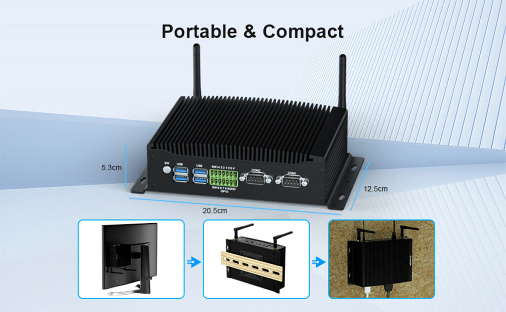 มินิพีซีแบบ Fanless รุ่นนี้ใช้ Intel UHD Graphics รองรับ 4K@60Hz และการแสดงผล 3 หน้าจอ เหมาะสำหรับงานกราฟิก มัลติทาสก์ หรือระบบควบคุมที่ต้องการความเสถียร