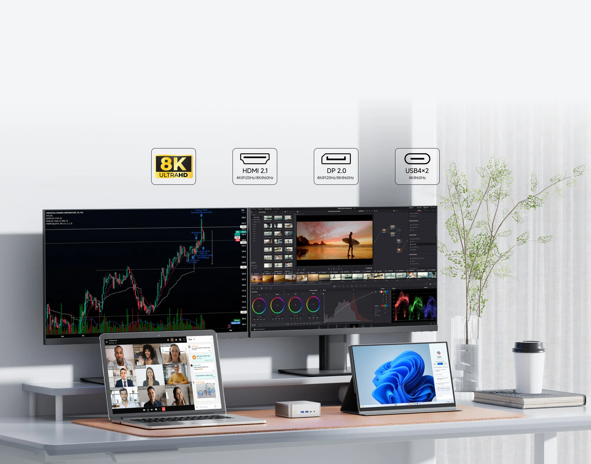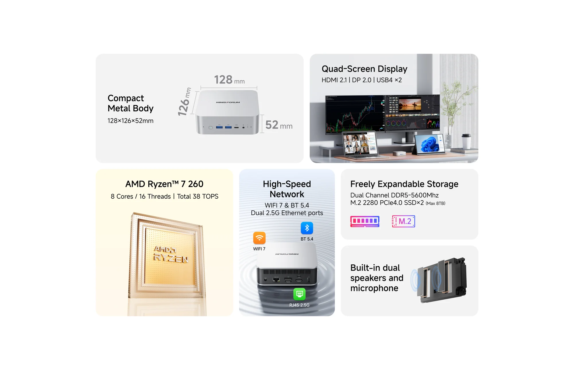 - Storage: 2x M.2 2280 NVMe SSD Slots (up to 4TB)
