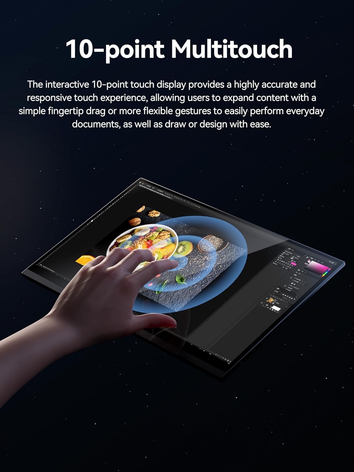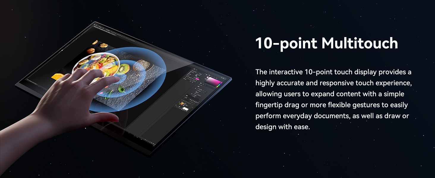 * ควบคุมทุกอย่างได้เพียงปลายนิ้ว ด้วย ระบบสัมผัส 10 จุด ที่ตอบสนองอย่างรวดเร็ว รองรับ Mac OS ให้คุณสลับใช้งานระหว่างอุปกรณ์ได้อย่างราบรื่น พร้อมลำโพงคู่ 1W x 2 เพิ่มอรรถรสทั้งภาพและเสียง ไม่ว่าคุณจะทำงานหรือผ่อนคลาย
