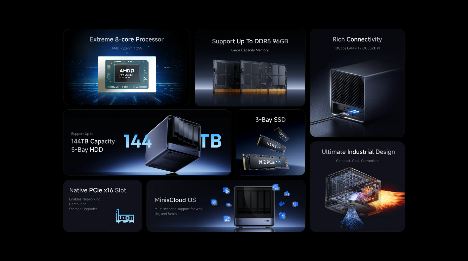 ✅ Ships with MinisCloud OS — Docker‑ready, AI photo library, media streaming, ZFS snapshots