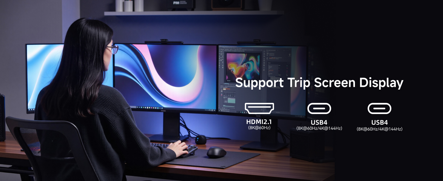 🖼️Video Output: HDMI 2.1 FRL ×1 (up to 8K@60/4K@144), USB4 ×2 (up to 8K@60/4K@144)