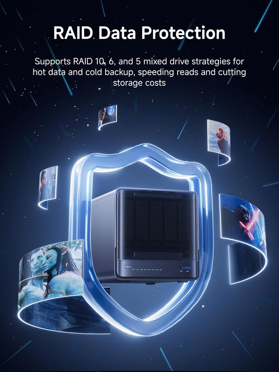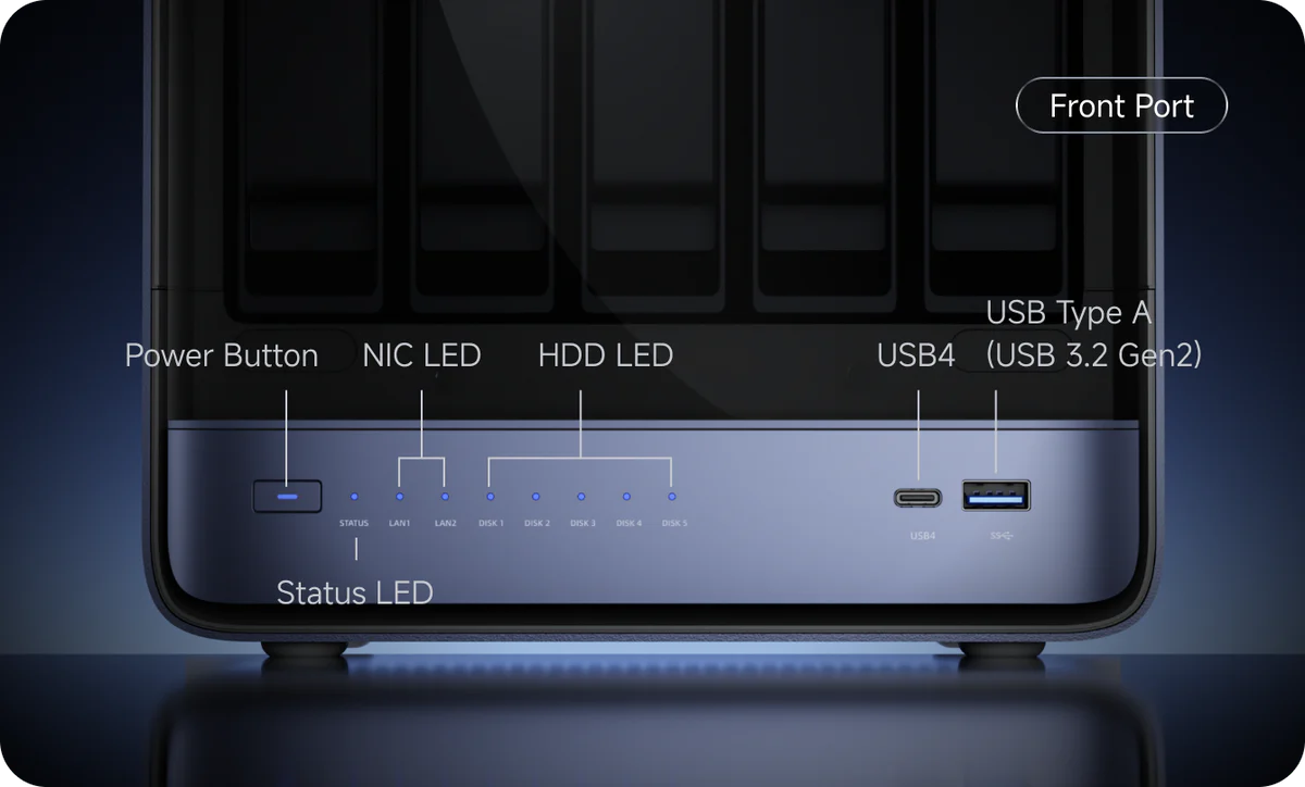 📦5 × 3.5″ HDD bays (≈22 TB each)
